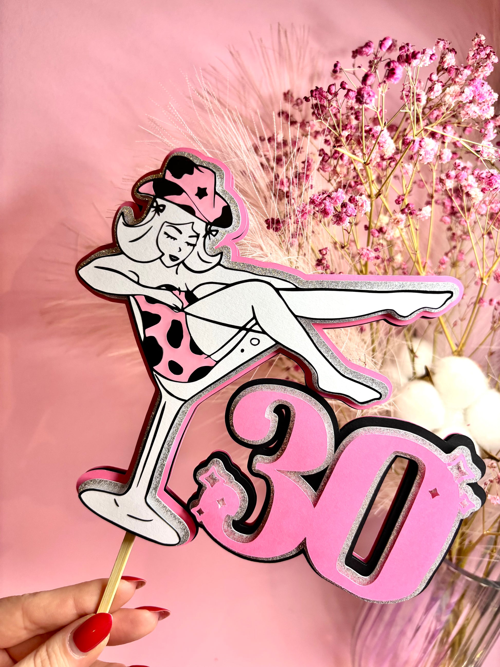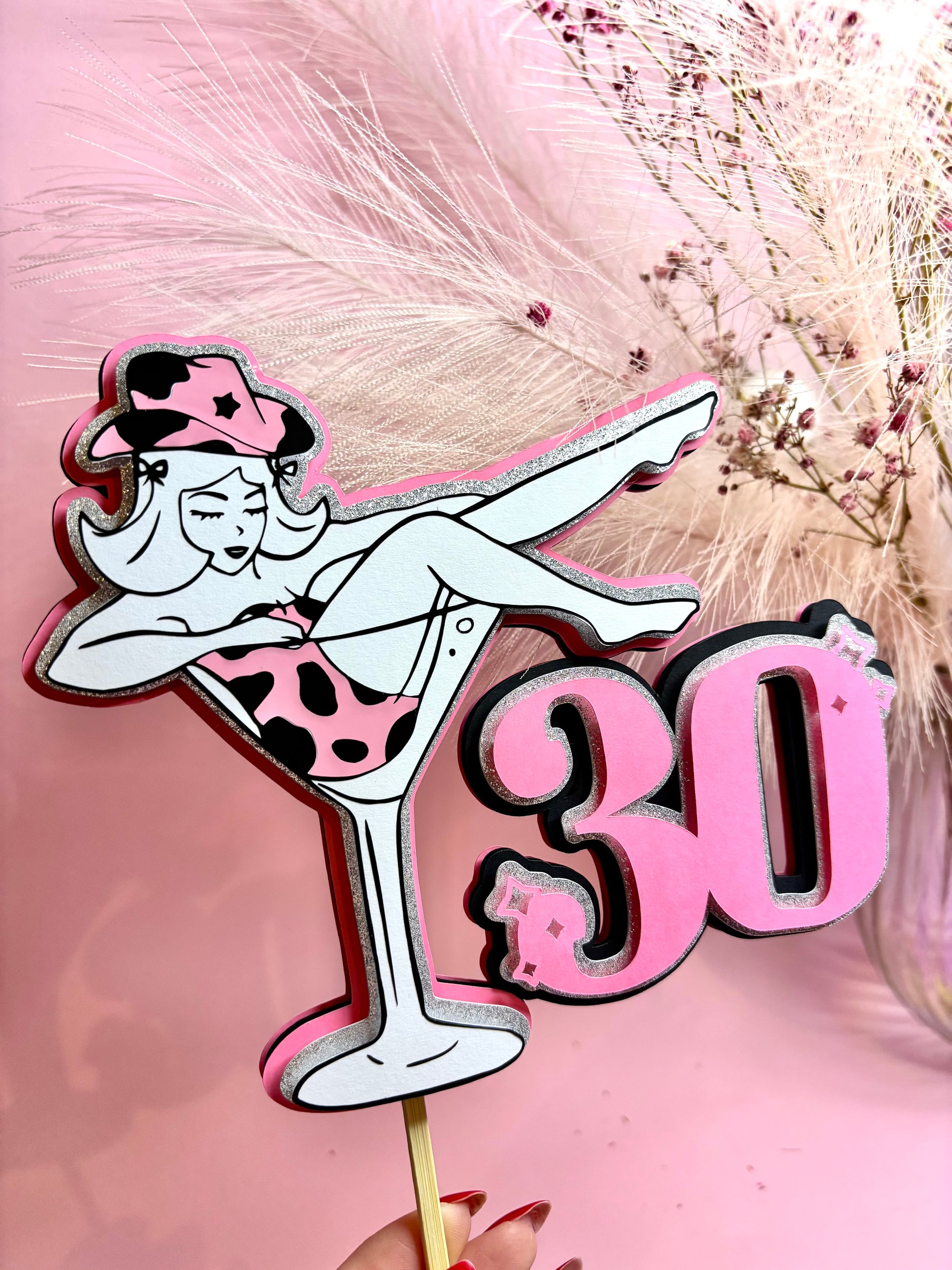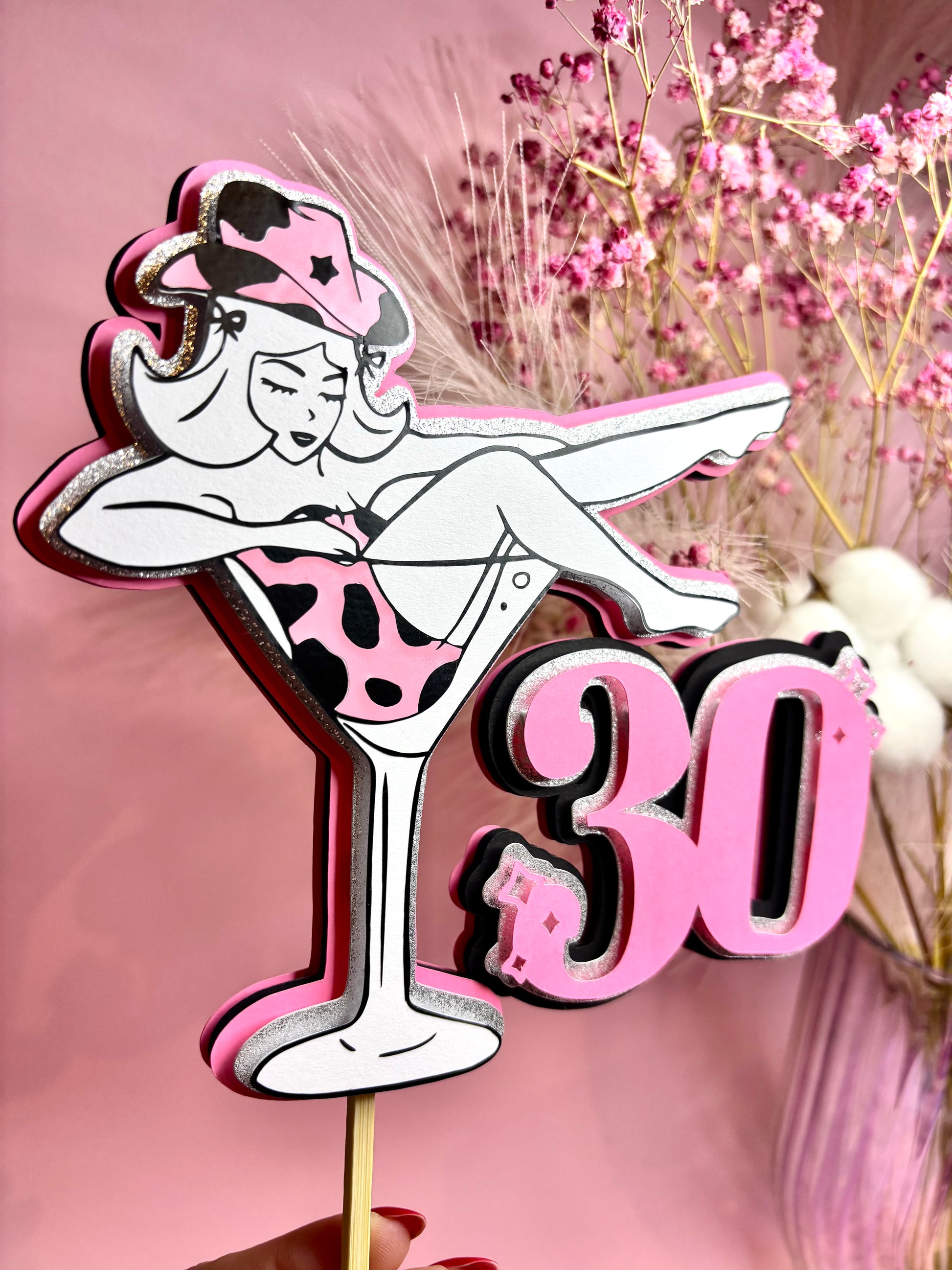Dodaj odrobinę humoru i elegancji do przyjęcia! Ten efektowny topper w kształcie kobiety w kieliszku z cyfrą wieku to idealny dodatek na urodziny – stylowy, zabawny i przyciągający wzrok. Nadaje się do włożenia do tortu lub bukietu kwiatów.